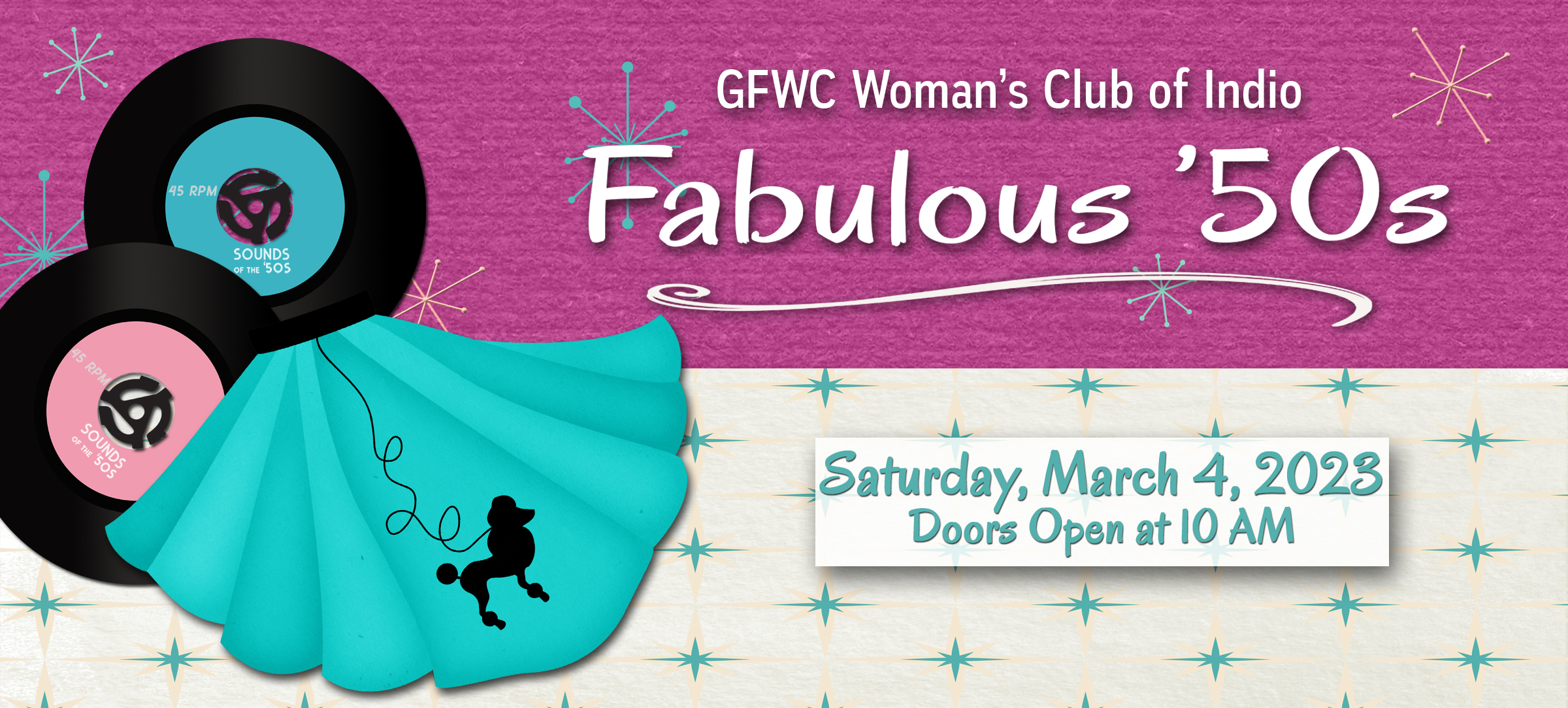 GFWC Woman’s Club of Indio proudly presents its 2023 annual fundraiser, Fabulous '50s! Here are important details: